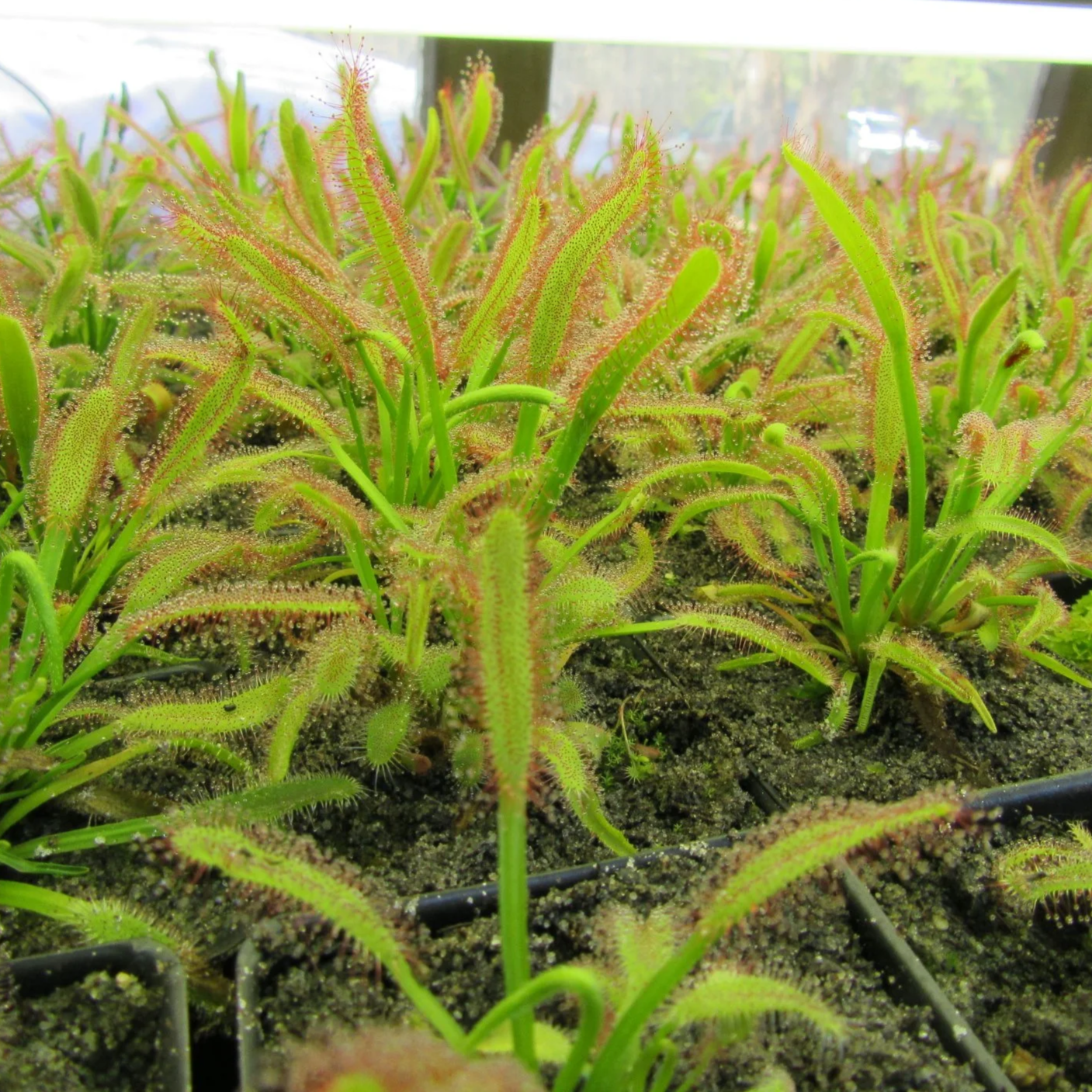Sundews come in many sizes and shapes but some are much hardier and forgiving. Watering is super easy on these; always standing on a saucer of (rain/purified/ro-) water. Fungus gnats, fruit flies and house flies are mainly on their dinner plate.
